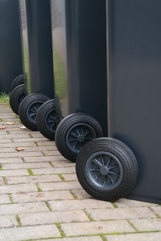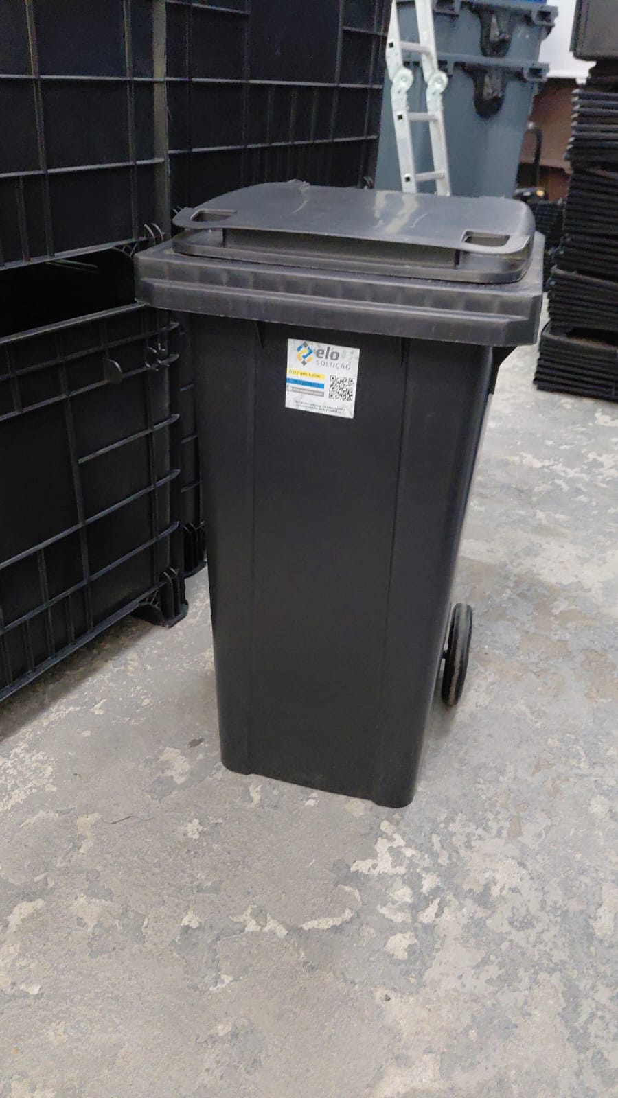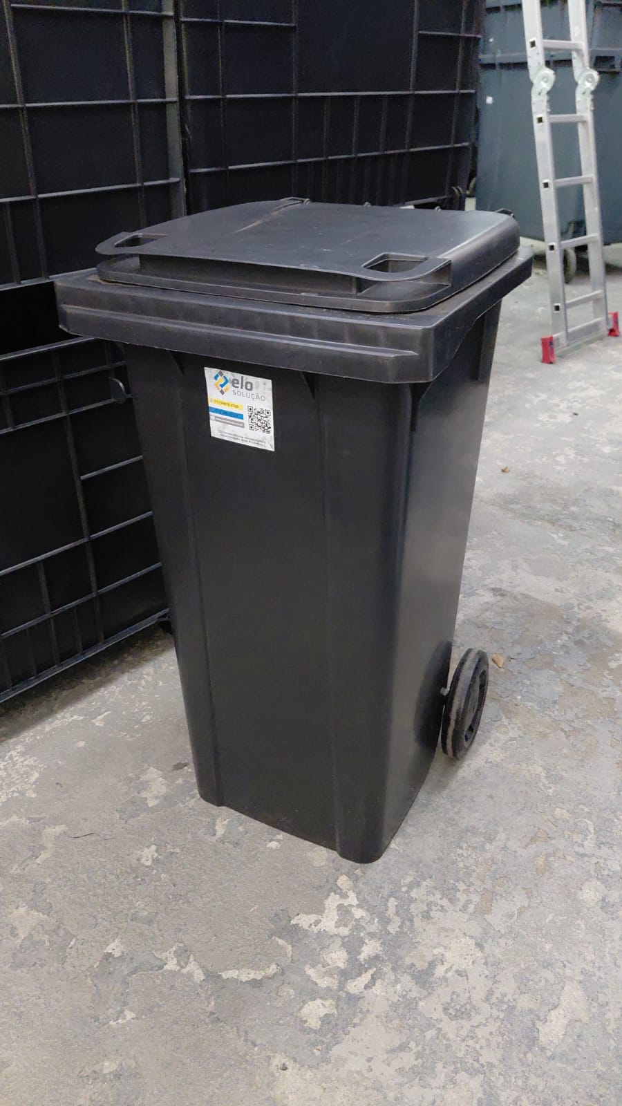 O carrinho coletor de lixo é fabricado em Polietileno de Alta densidade (PEAD) ou Polipropileno (PP).
