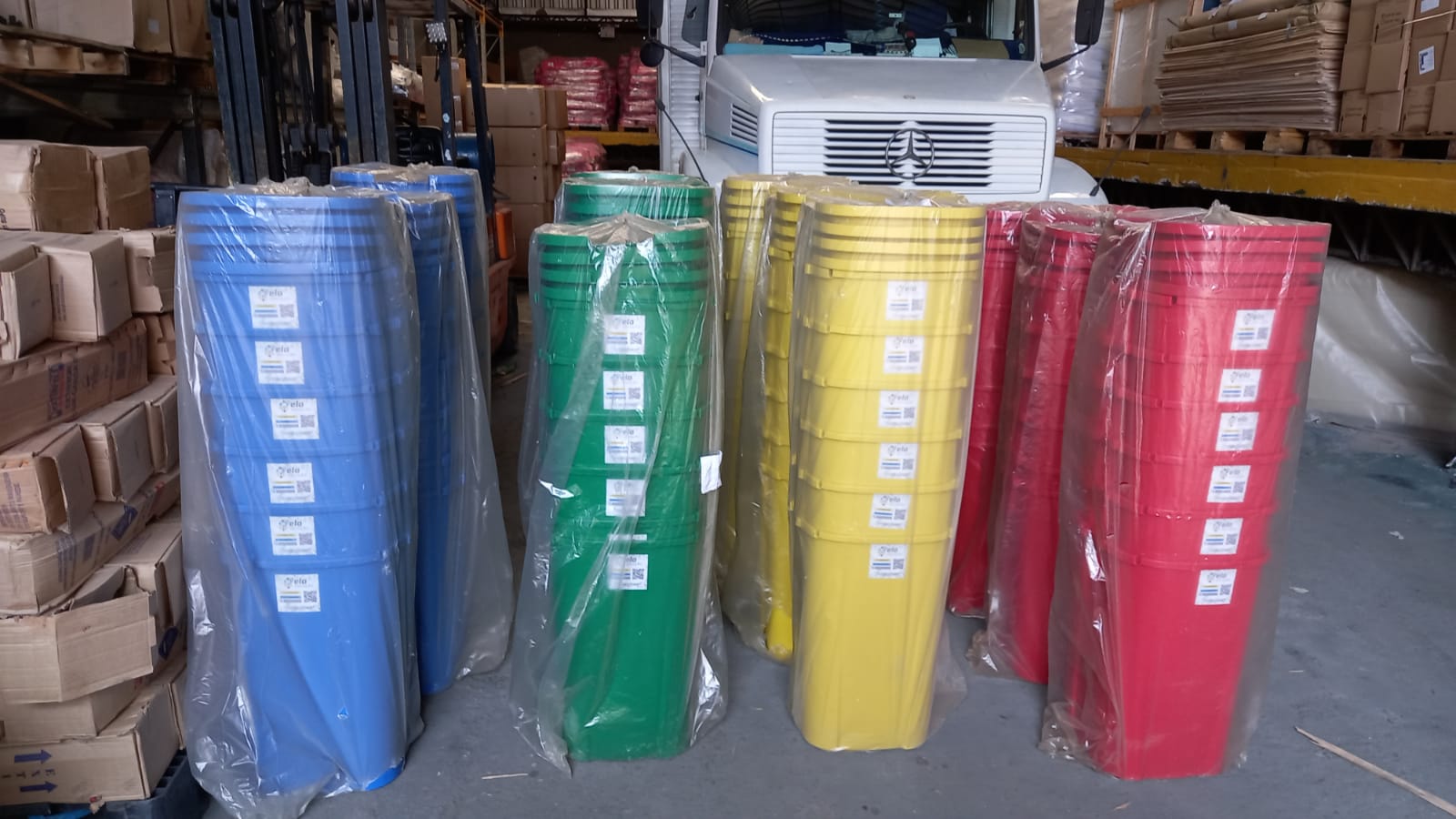 :: São divididas por cores para facilitar o descarte e separação do lixo